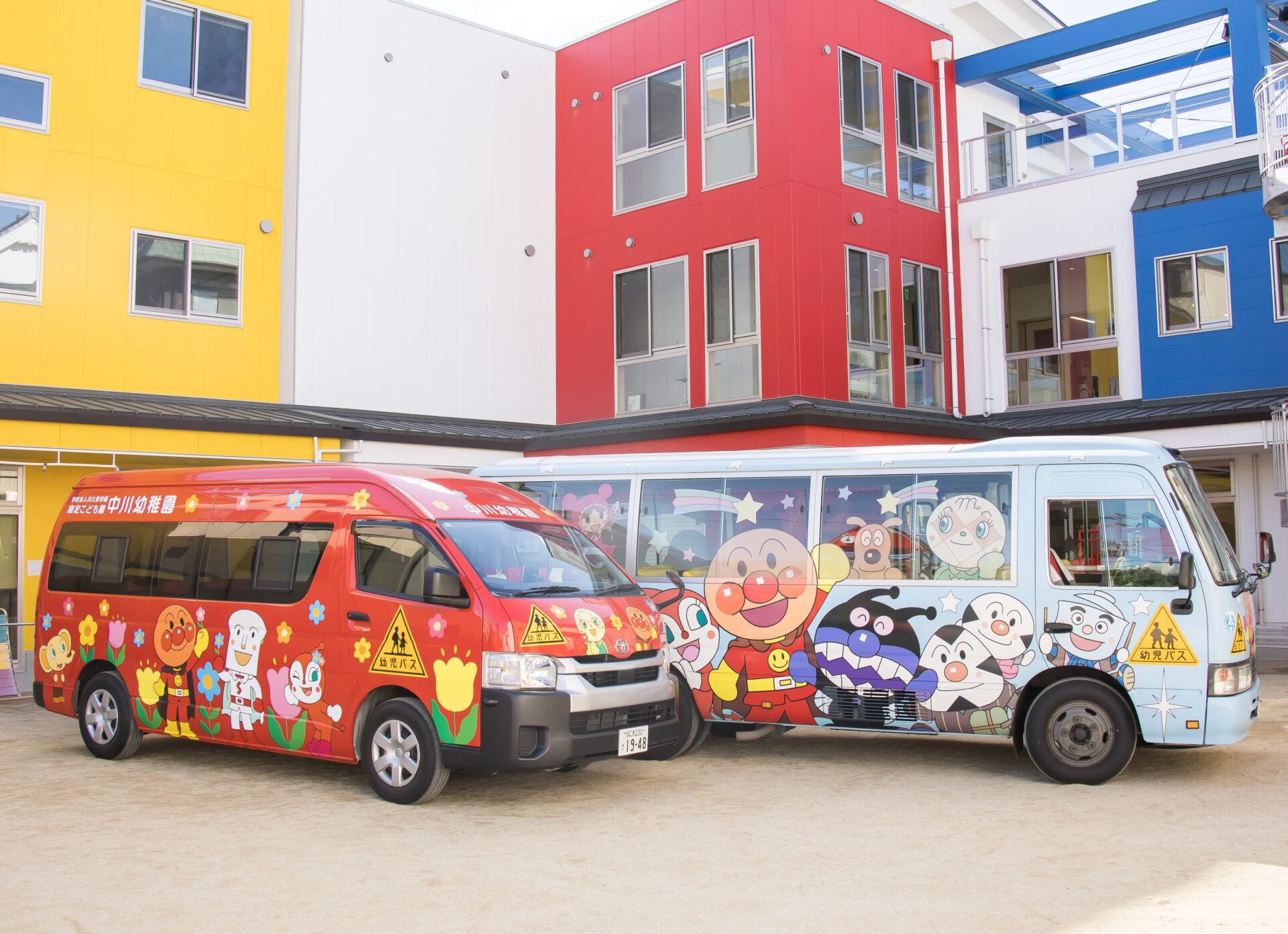 アンパンマンが描かれた2台のバスで子どもたちを送り迎えしています。ベテラン運転手による安全運転で、社会性や乗車マナーを学び添乗する先生やお友だちとの触れ合いを経験します。